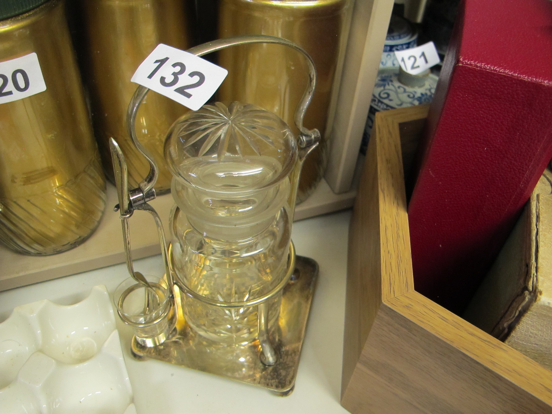 A Late 19th/Early 20th Century Silver-Toned Metal and Cut-Glass Condiment Set
