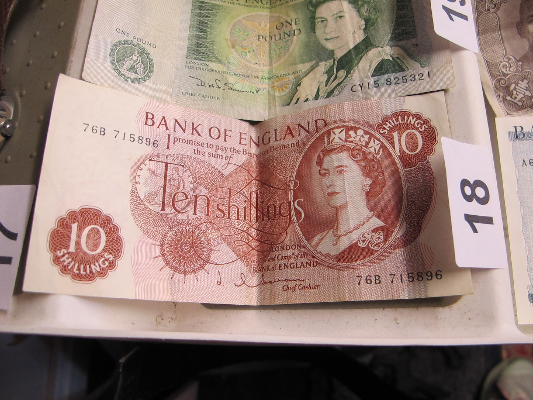 A Bank of England Ten Shillings Banknote, Queen Elizabeth II, J.Q. Hollom Signature