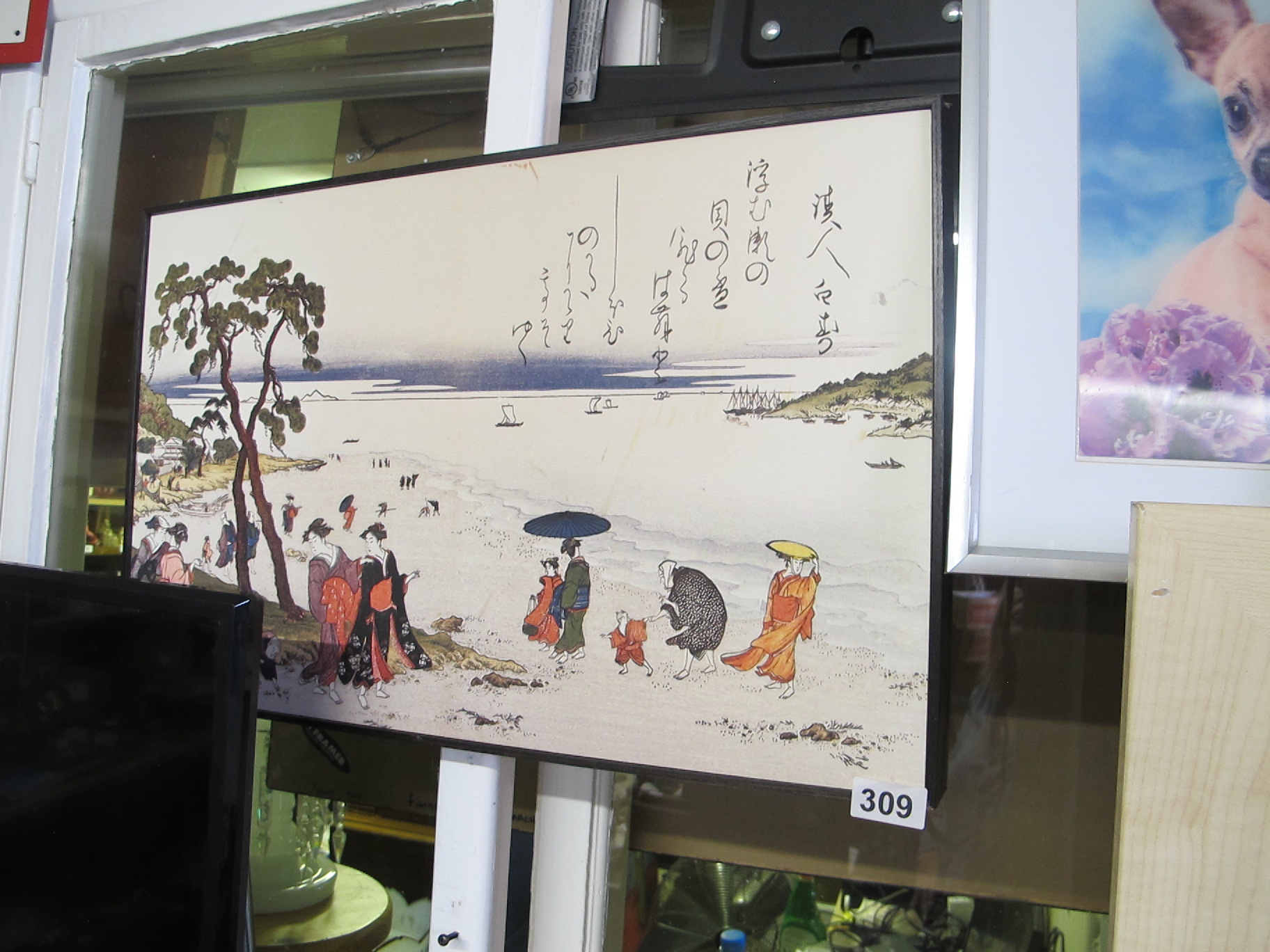 A Framed Japanese Ukiyo-e Style Coastal Landscape Print
