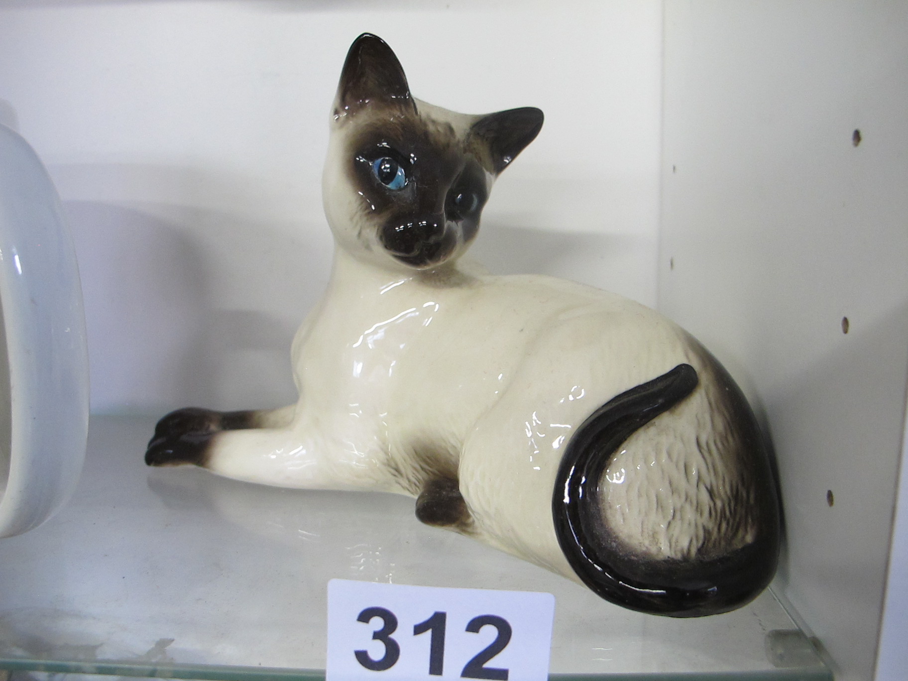 A Glazed Ceramic Figurine of a Recumbent Siamese Cat