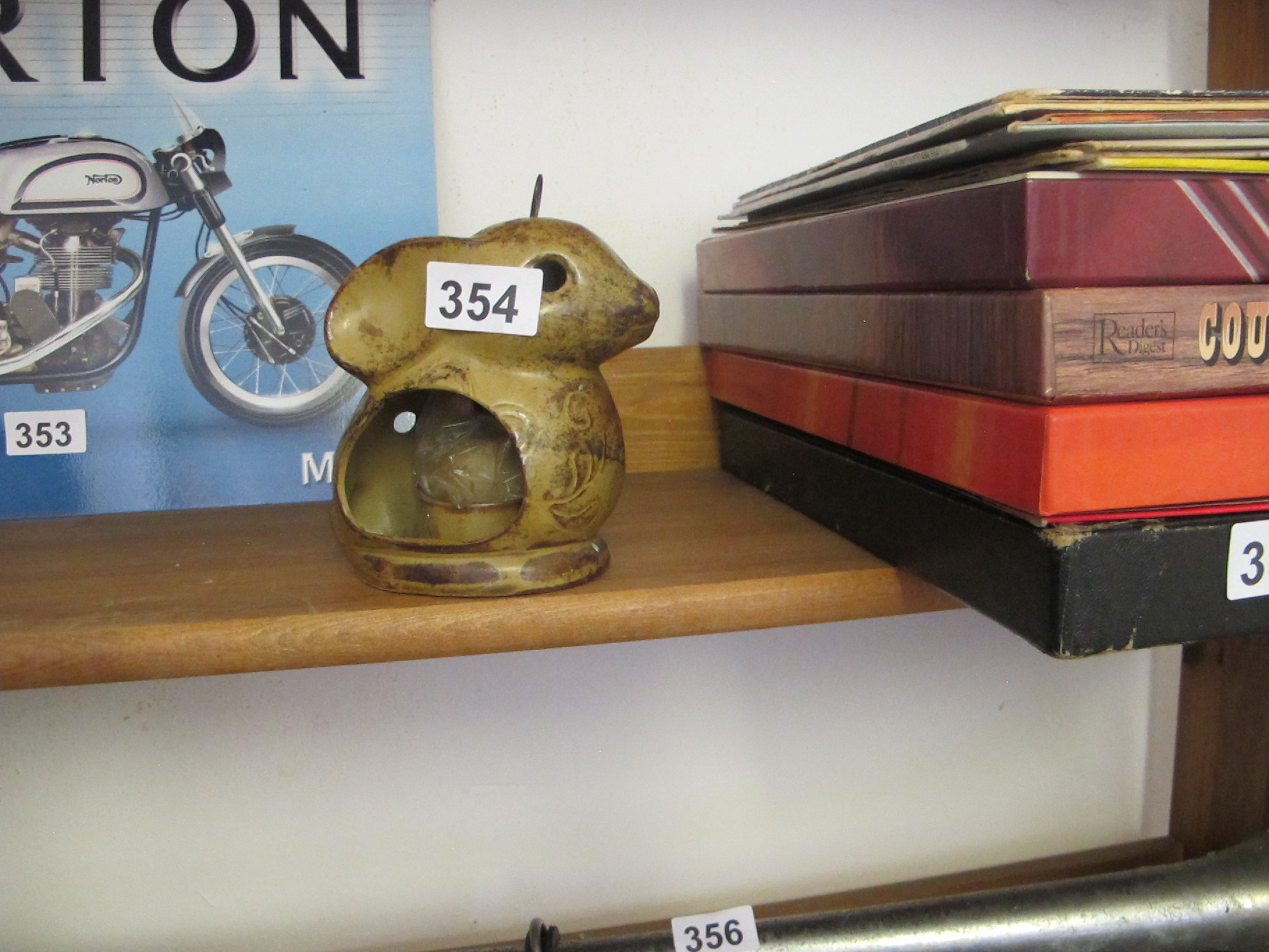 A Glazed Ceramic Stylized Rabbit Figurine, possibly a Candle Holder or Incense Burner
