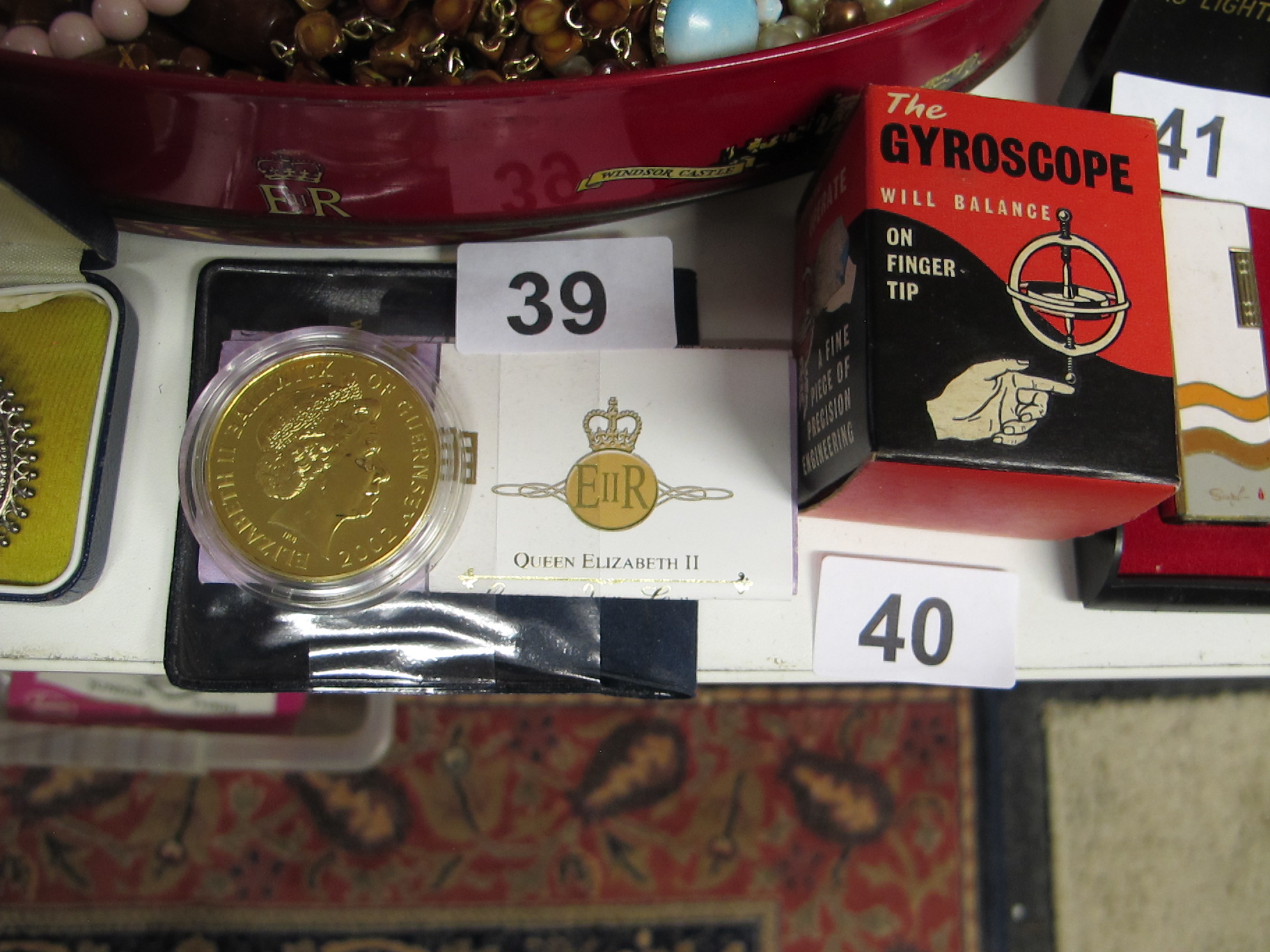 A 2002 Guernsey Queen Elizabeth II 24 carat Gold plated Commemorative Coin