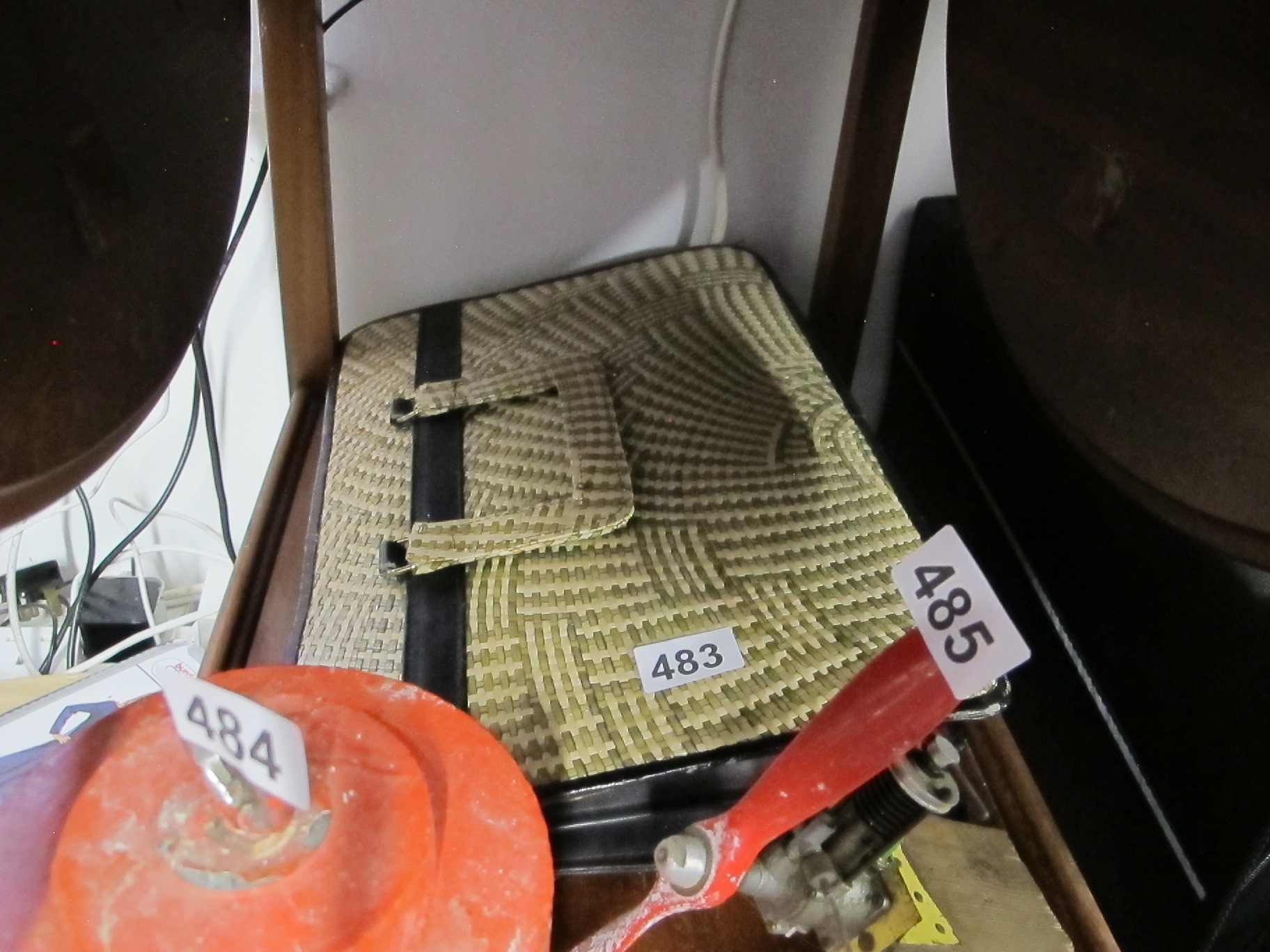 A Woven Natural Fiber Flat Case with Faux Leather Trim