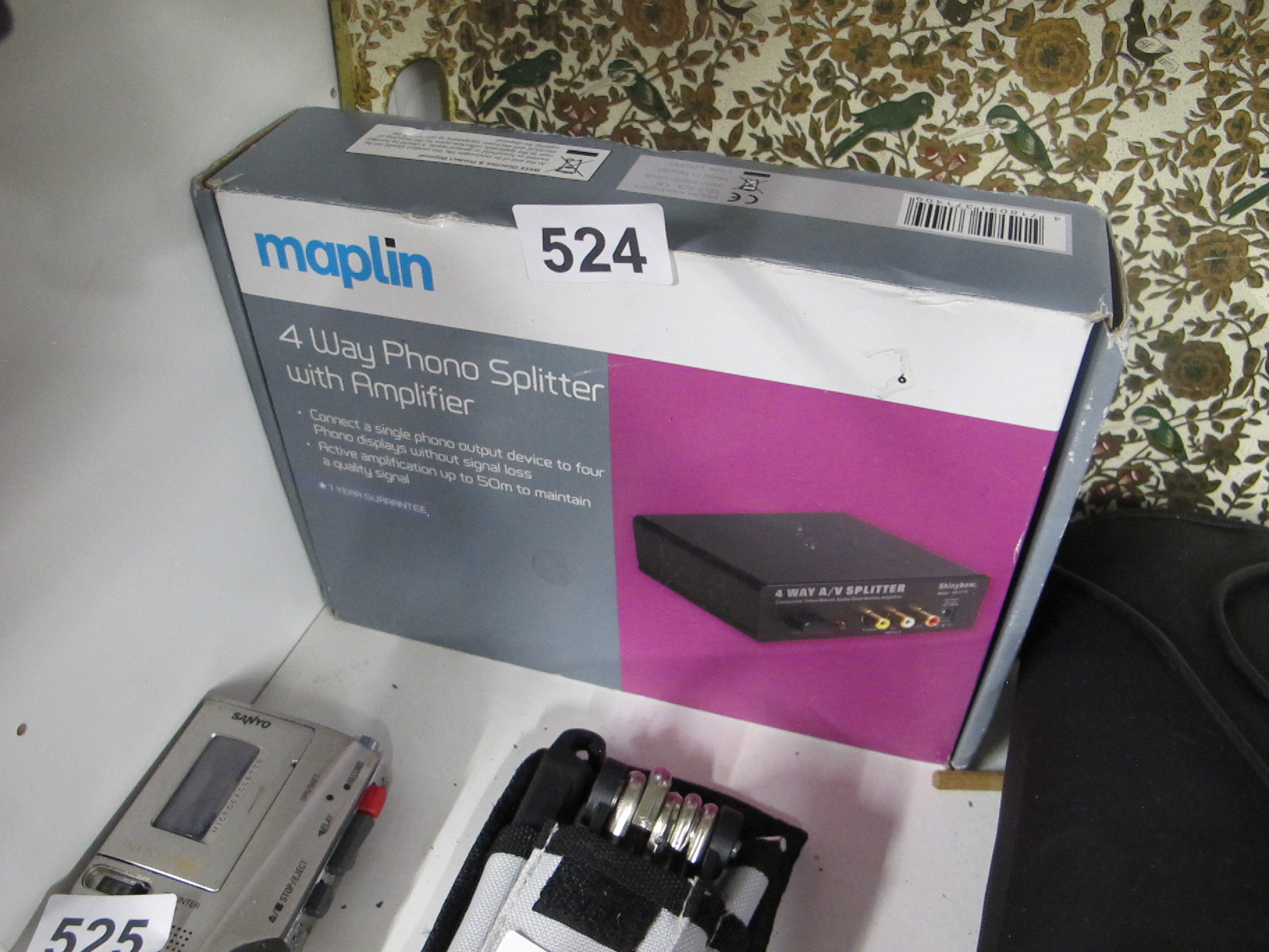 A Maplin 4 Way Phono Splitter with Amplifier, in original retail packaging