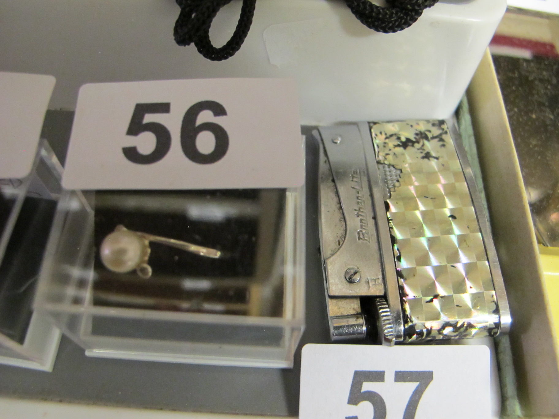 A silver ring featuring a cream-colored spherical bead resembling a pearl