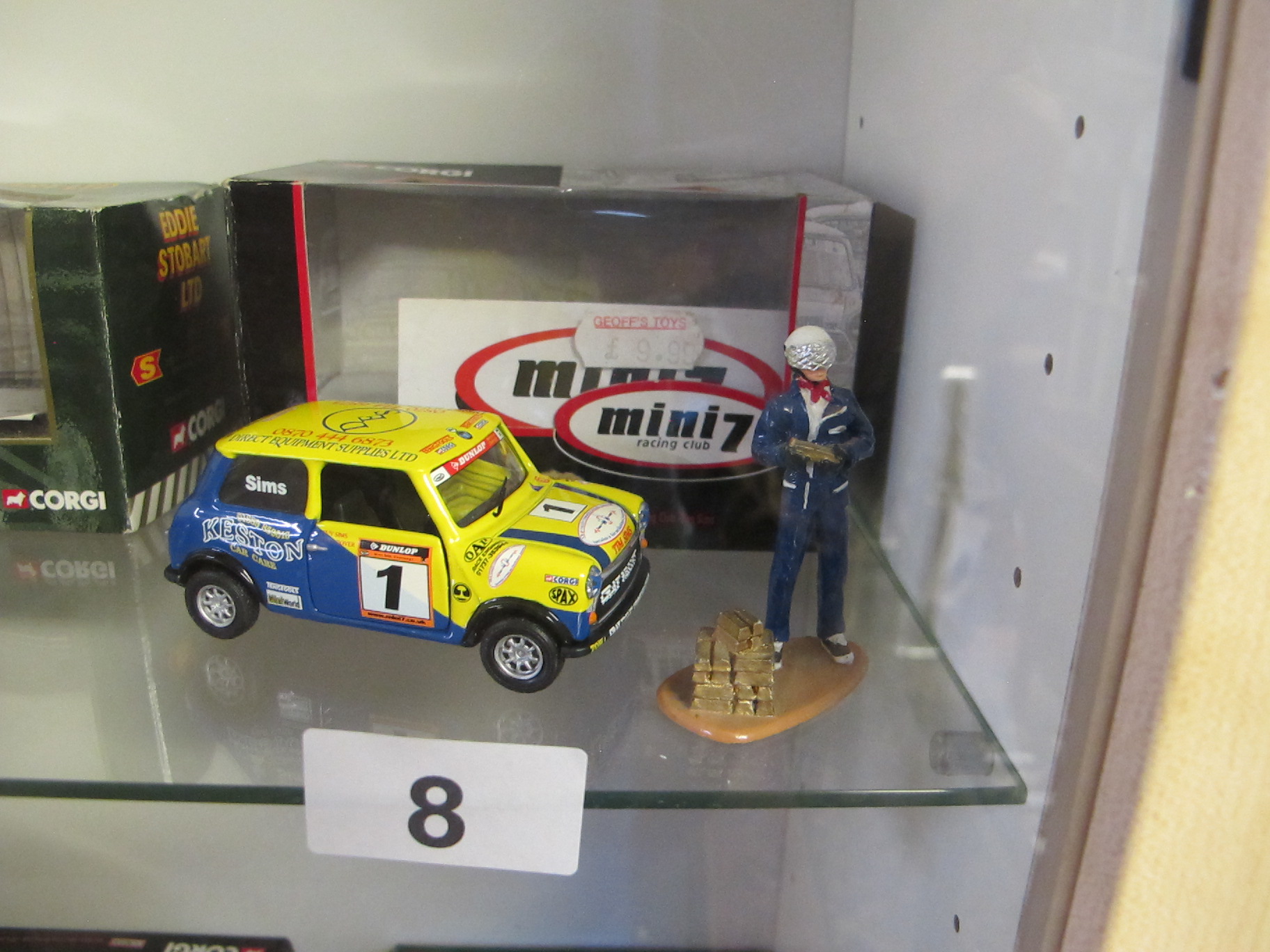 A Corgi Die-Cast Racing Mini Model with Driver Figurine and Associated Packaging