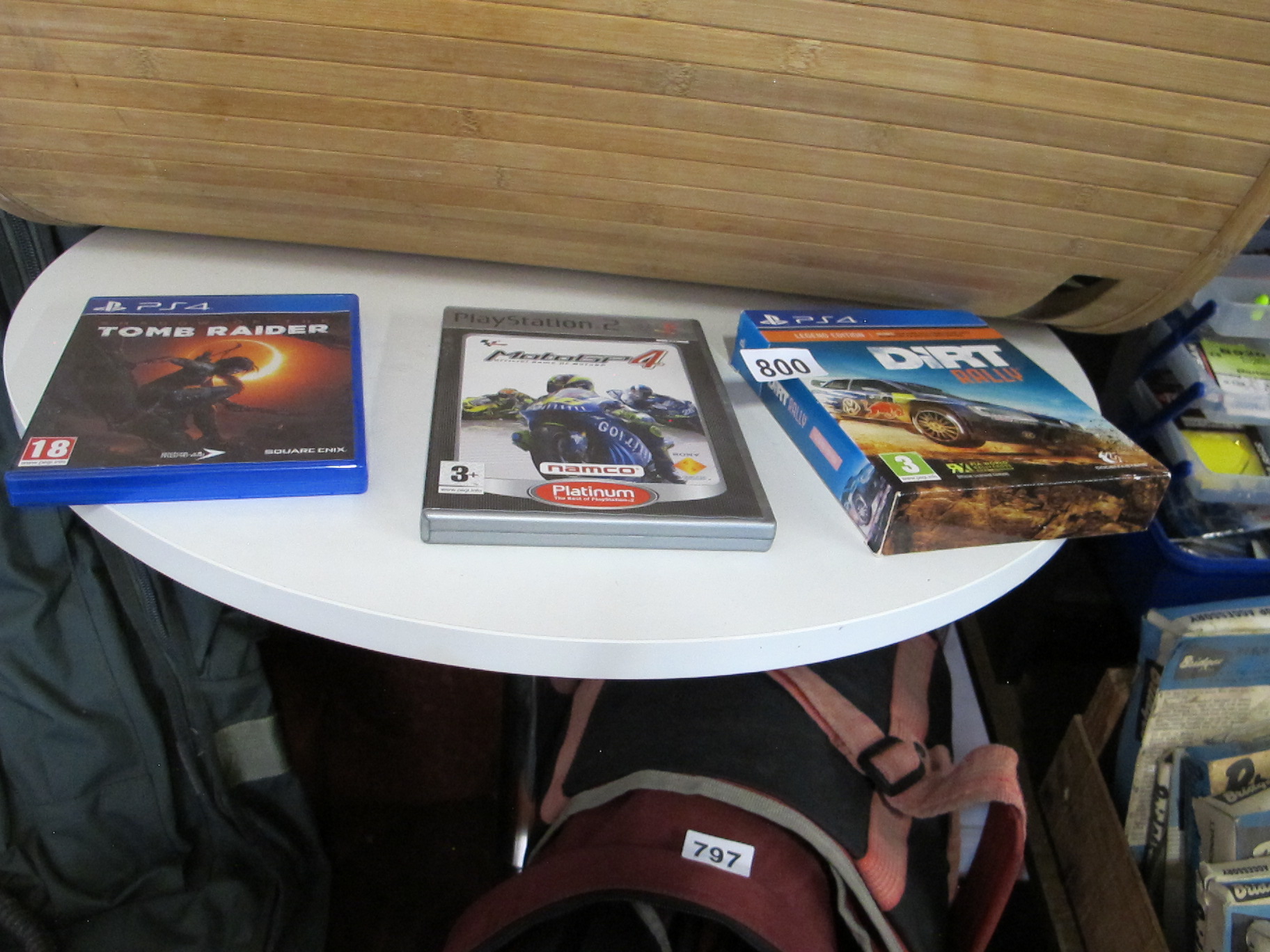 Three Modern Video Games: Tomb Raider (PS4), MotoGP 4 (PS2), and DiRT Rally (PS4)
