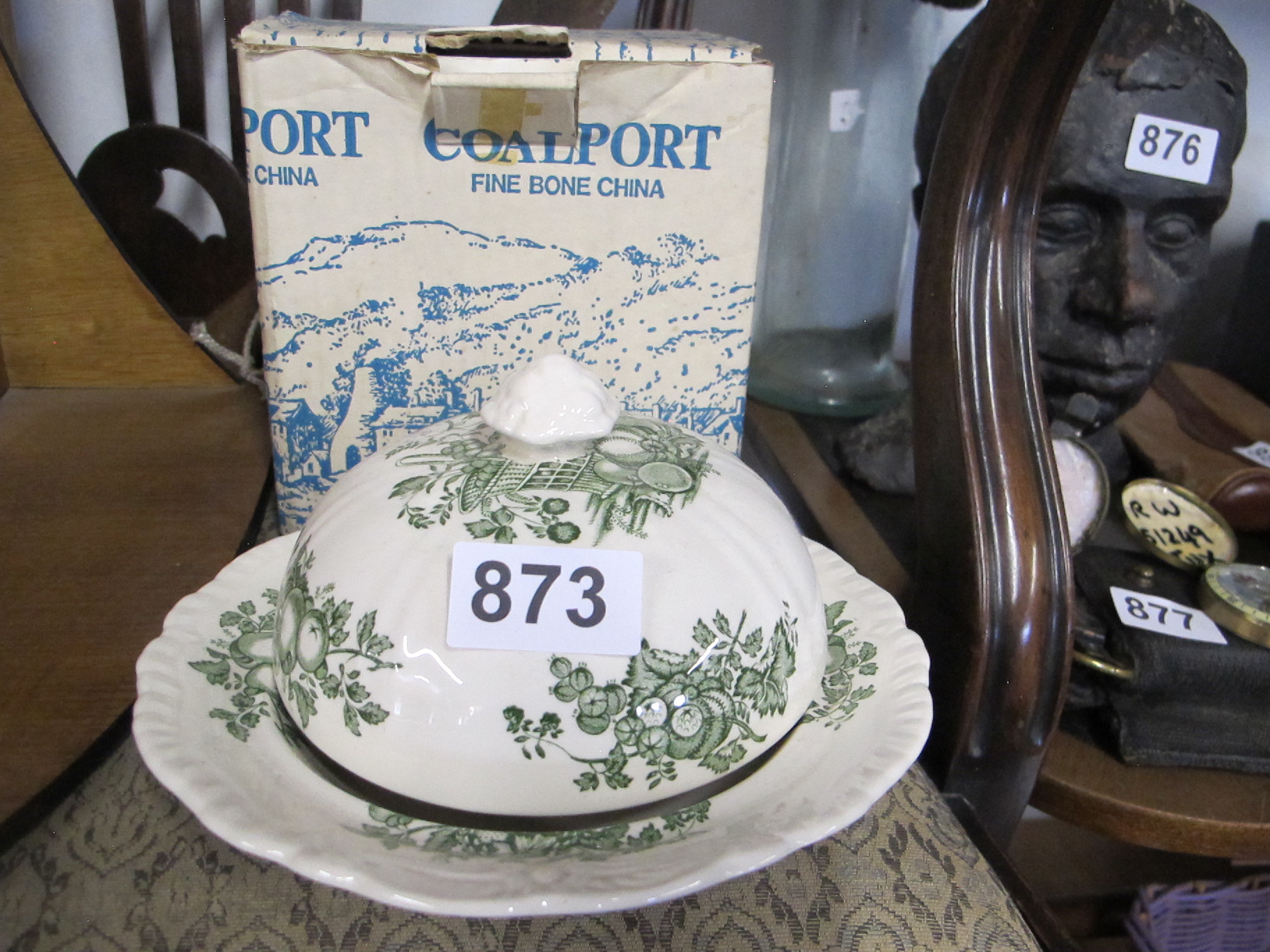 A Coalport Fine Bone China Green Transfer-Printed Lidded Butter/Cheese Dish with Underplate