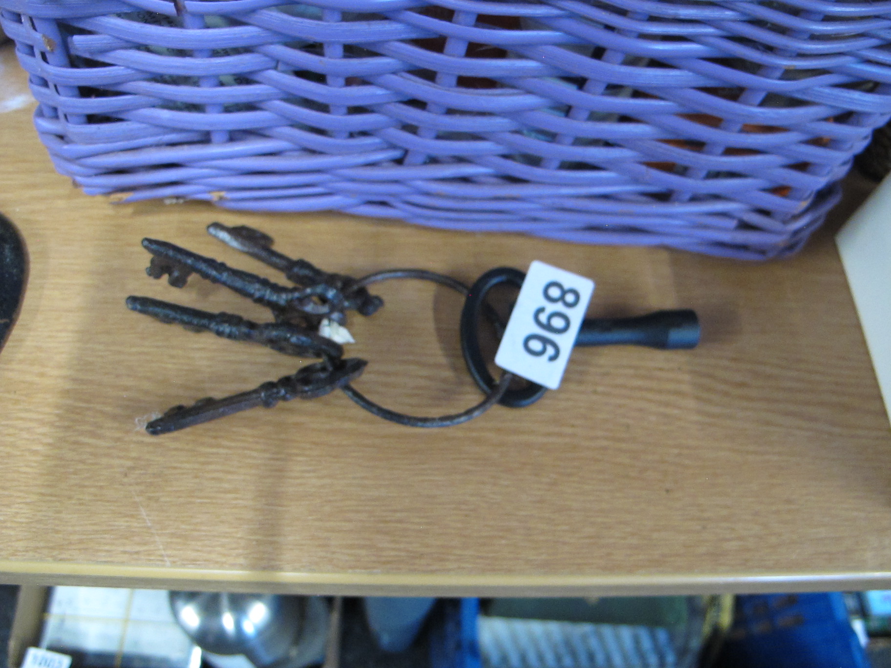A Set of Four Cast Iron Skeleton Keys on a Ring