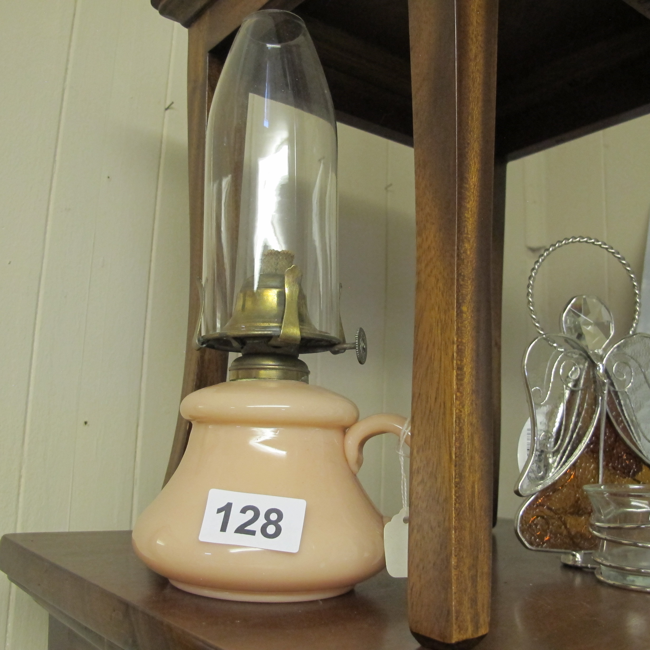Vintage Opaque Glass Oil Lamp with Integrated Handle
