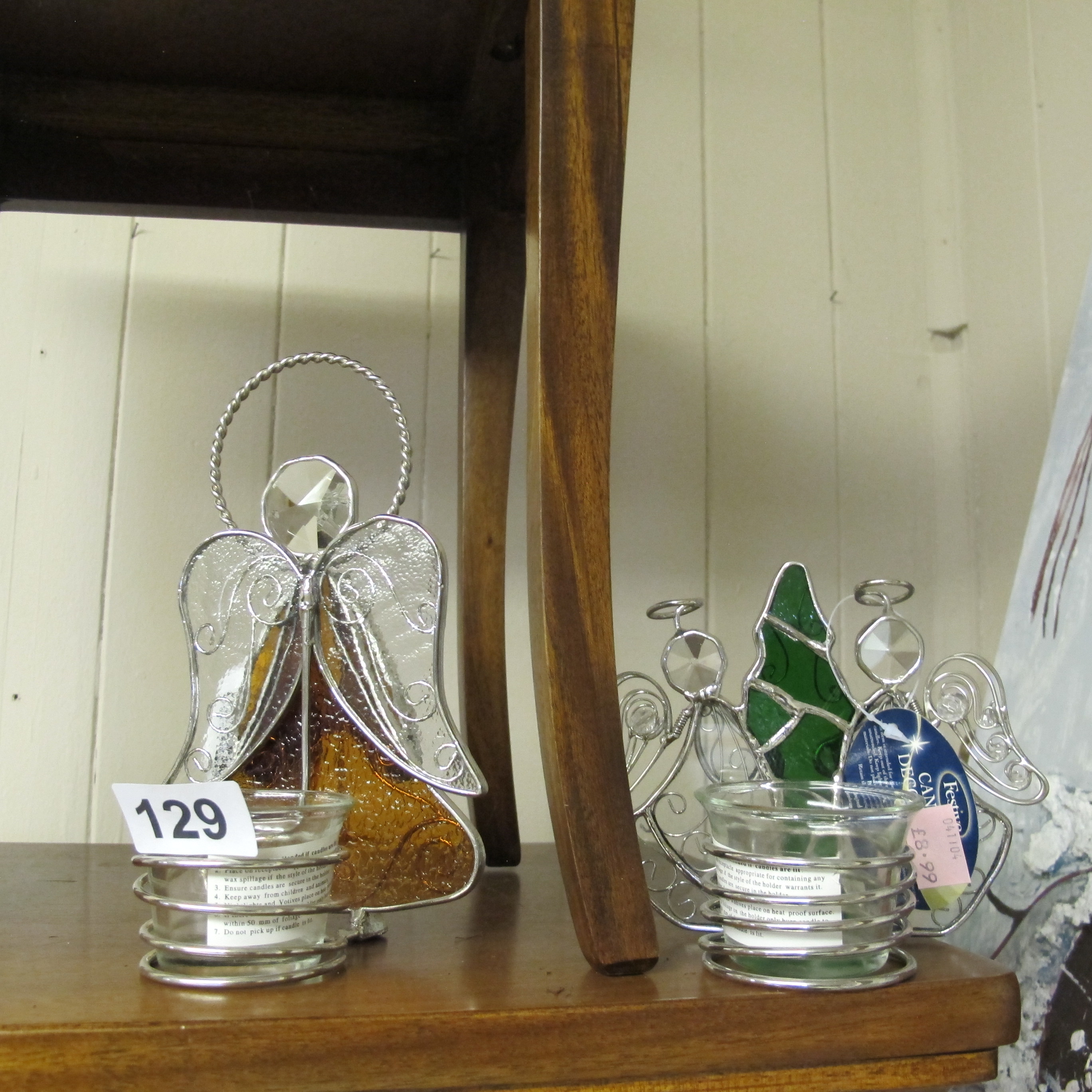Set of Three Contemporary Angelic Figure Candle Holders, Stained Glass Style