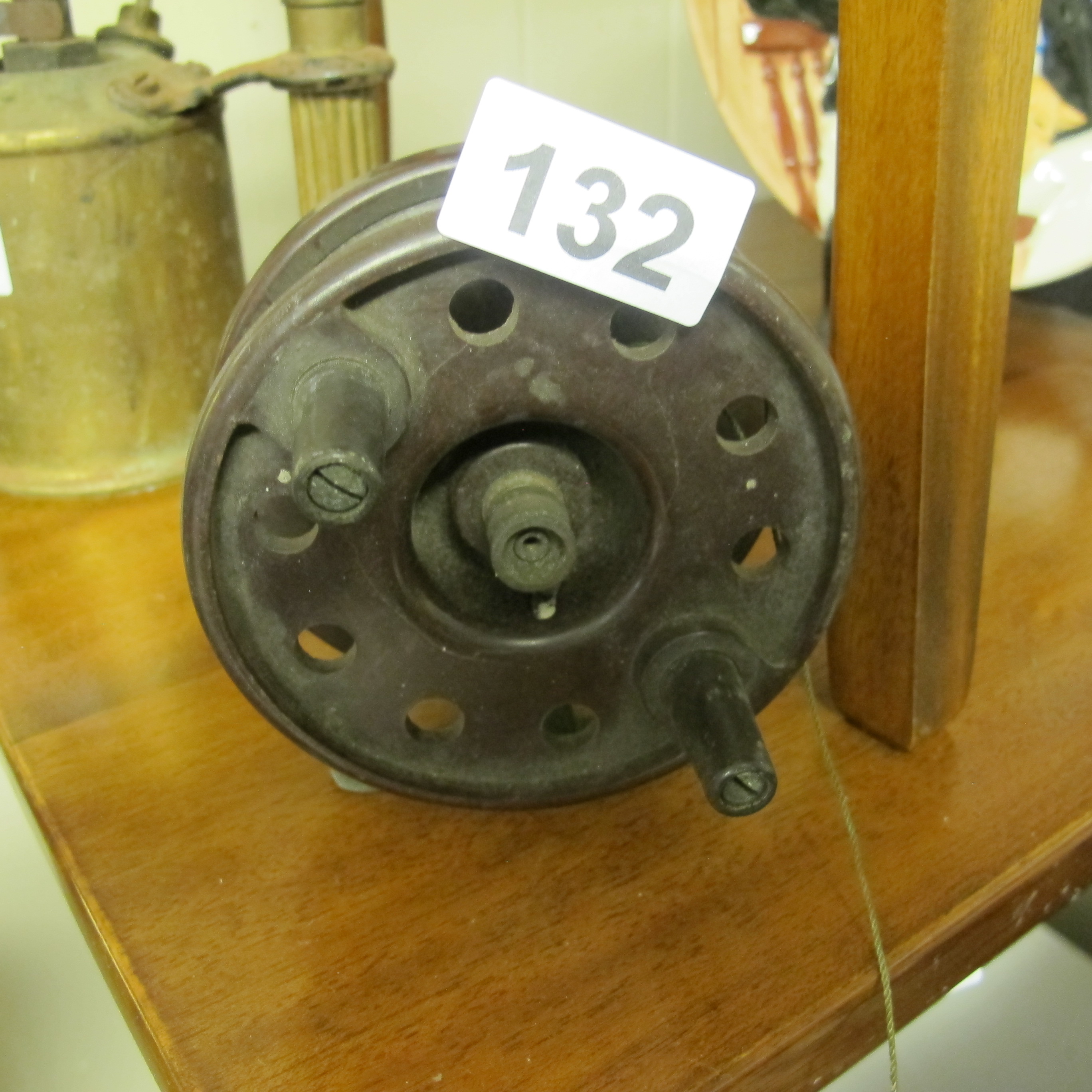 Vintage Dark Brown Bakelite-Style Fly Fishing Reel