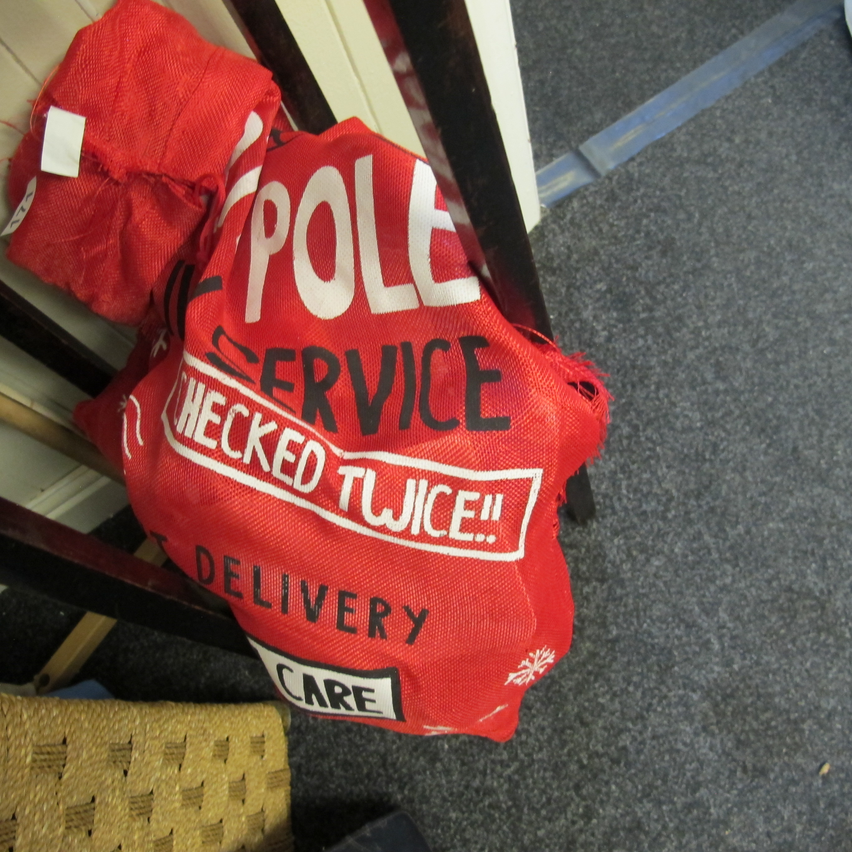 North Pole Delivery Christmas Santa Sack containing various toys