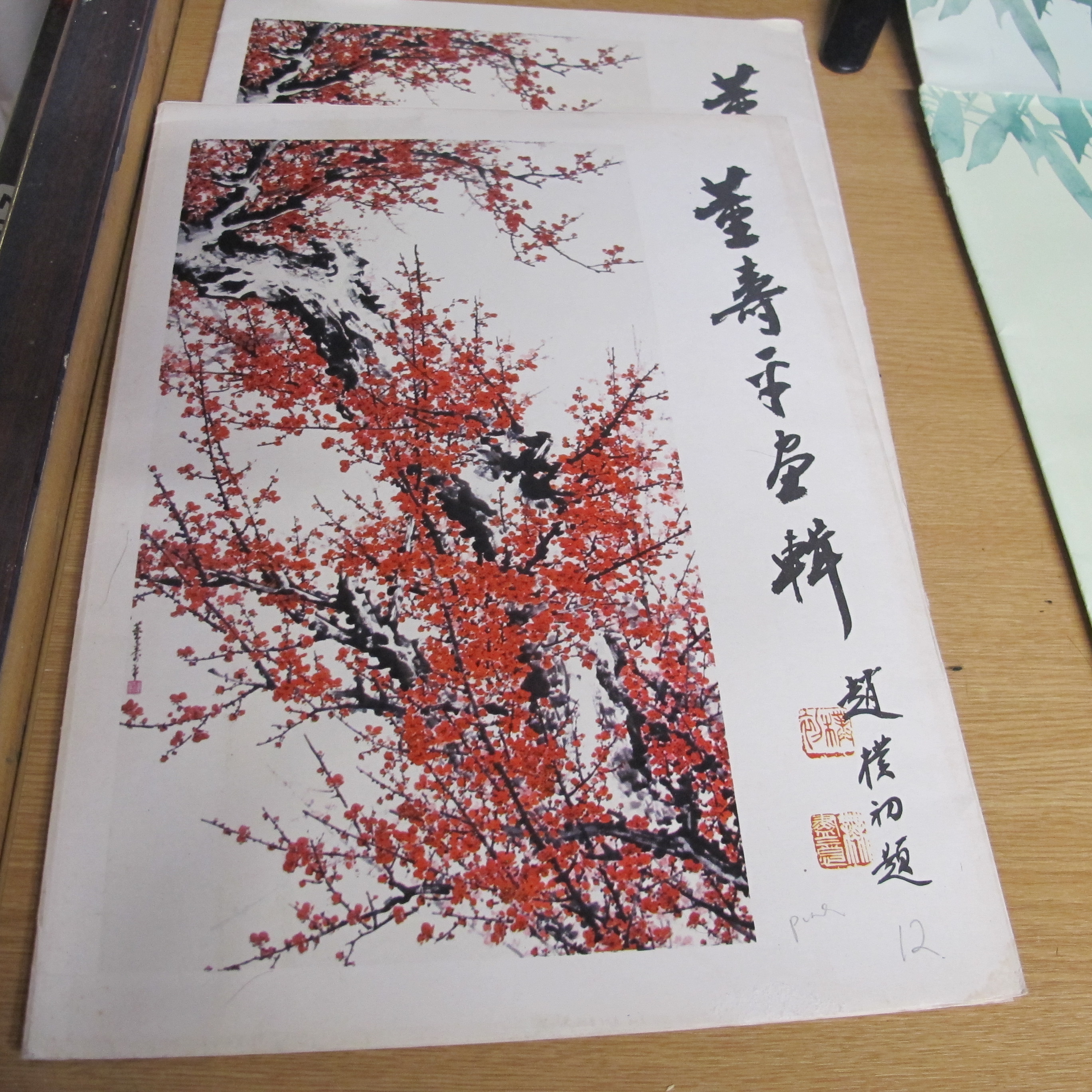 Pair of East Asian Plum Blossom Prints, Bearing Inscription and Seals
