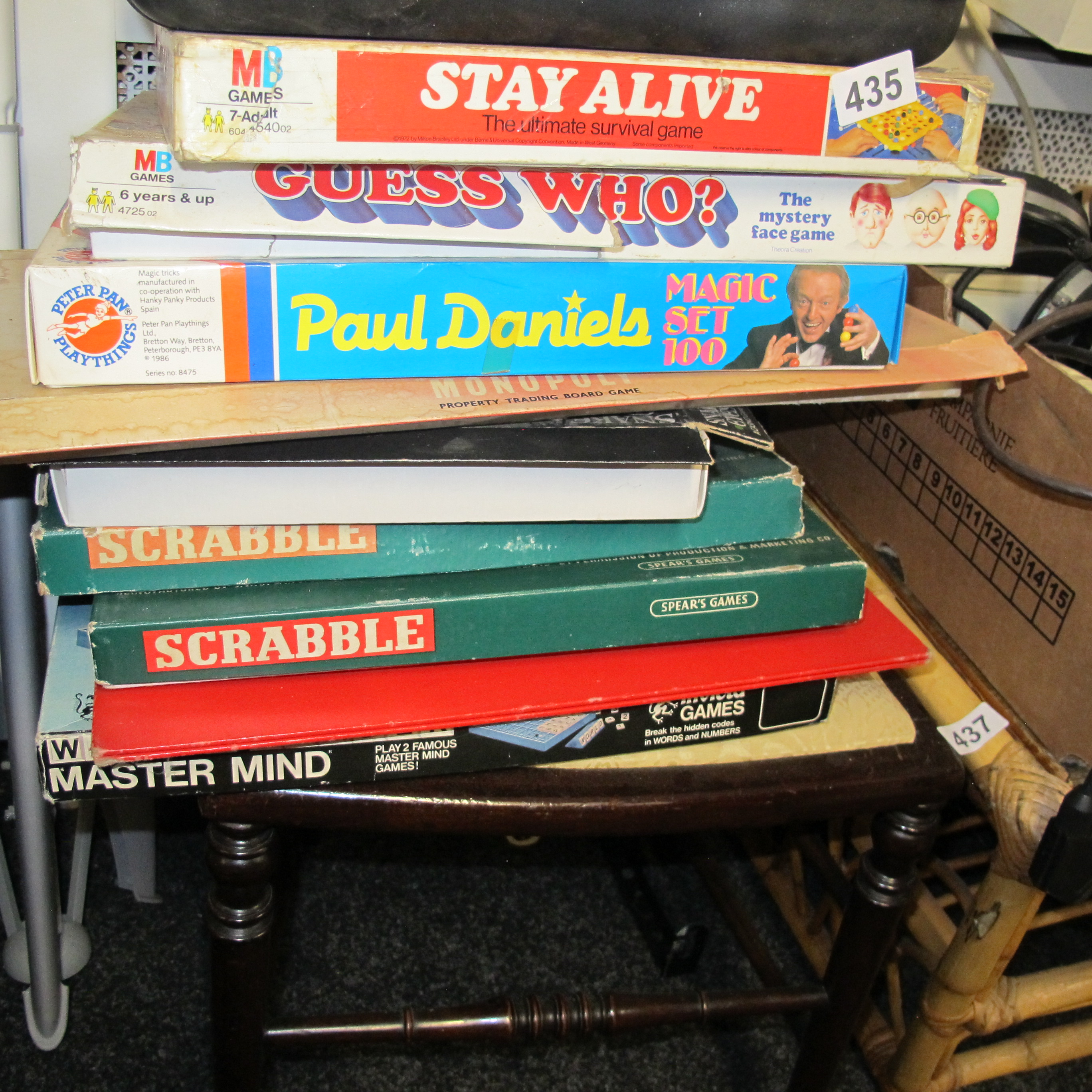 A Collection of Vintage Board Games and Magic Set, including Stay Alive, Guess Who?, Paul Daniels Magic Set, Monopoly, Scrabble, and Master Mind