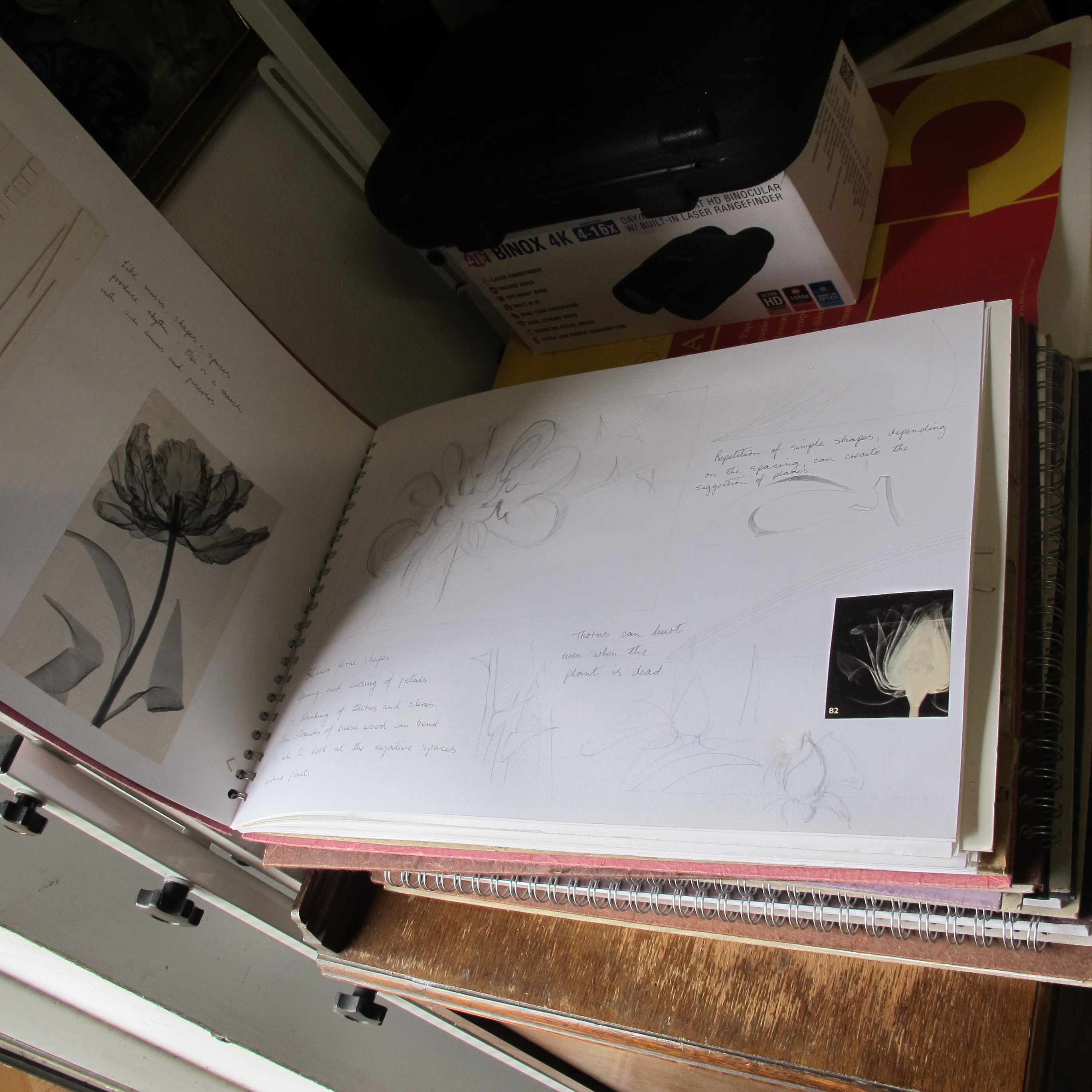 Contemporary Artist’s Spiral-Bound Sketchbook with Botanical X-Ray Photograms and Conceptual Notes from a art teachers collection based in Loughborough