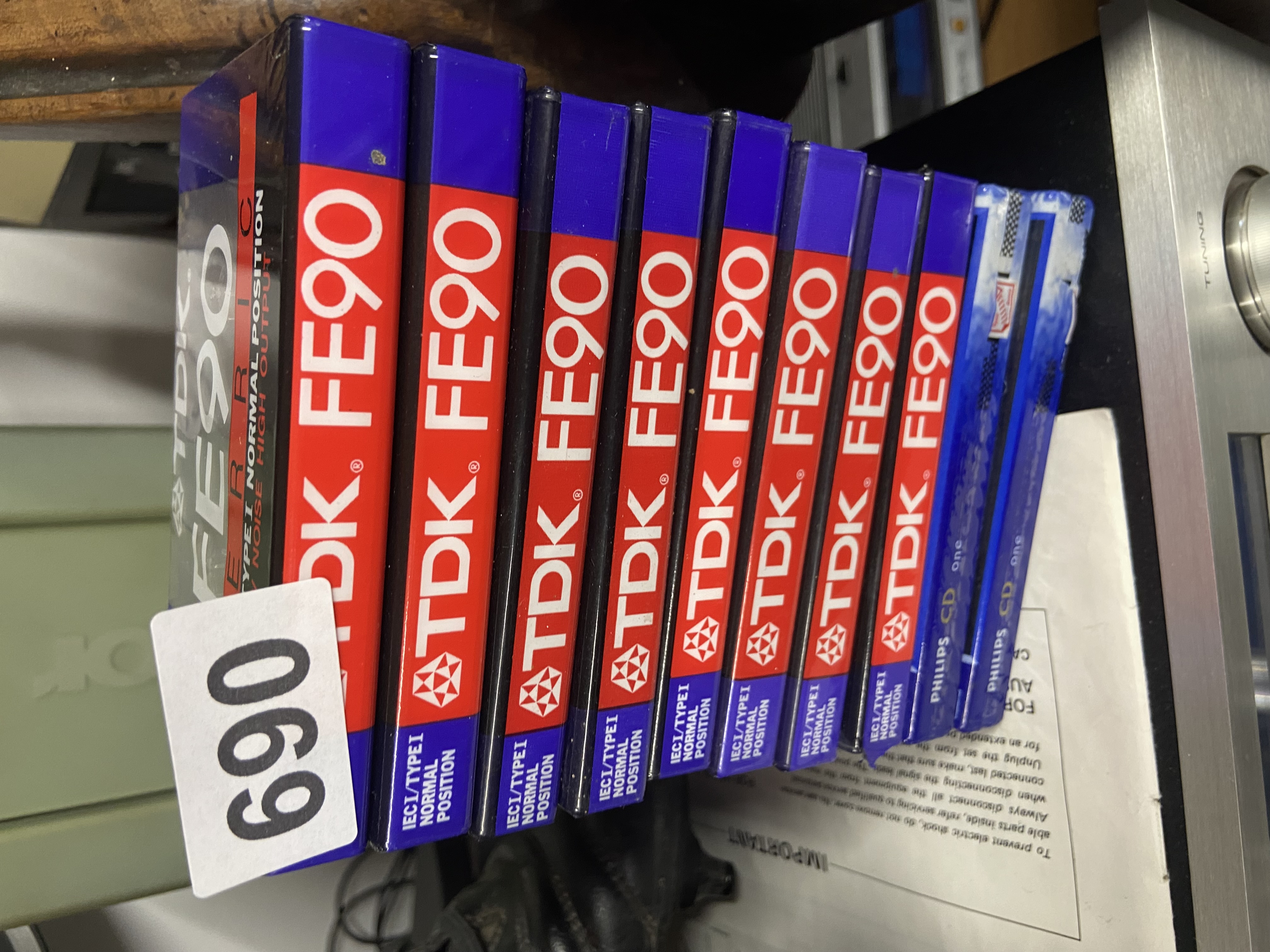 Ten TDK FE90 IECI/TYPEI Normal Position Blank Audio Cassette Tapes with Two Philips CD Cases