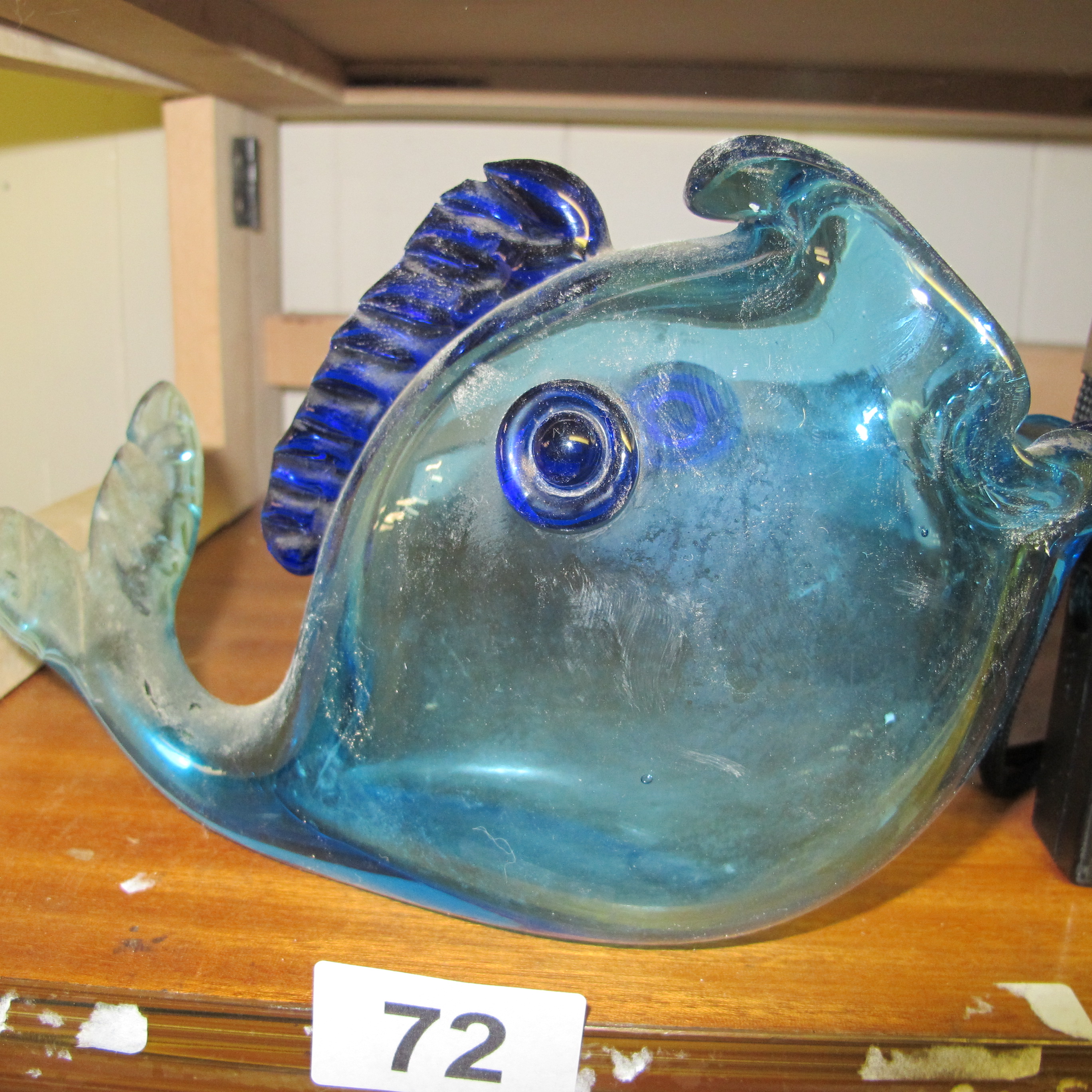 Blenko Mid-Century Modern Blue Glass Fish Vase