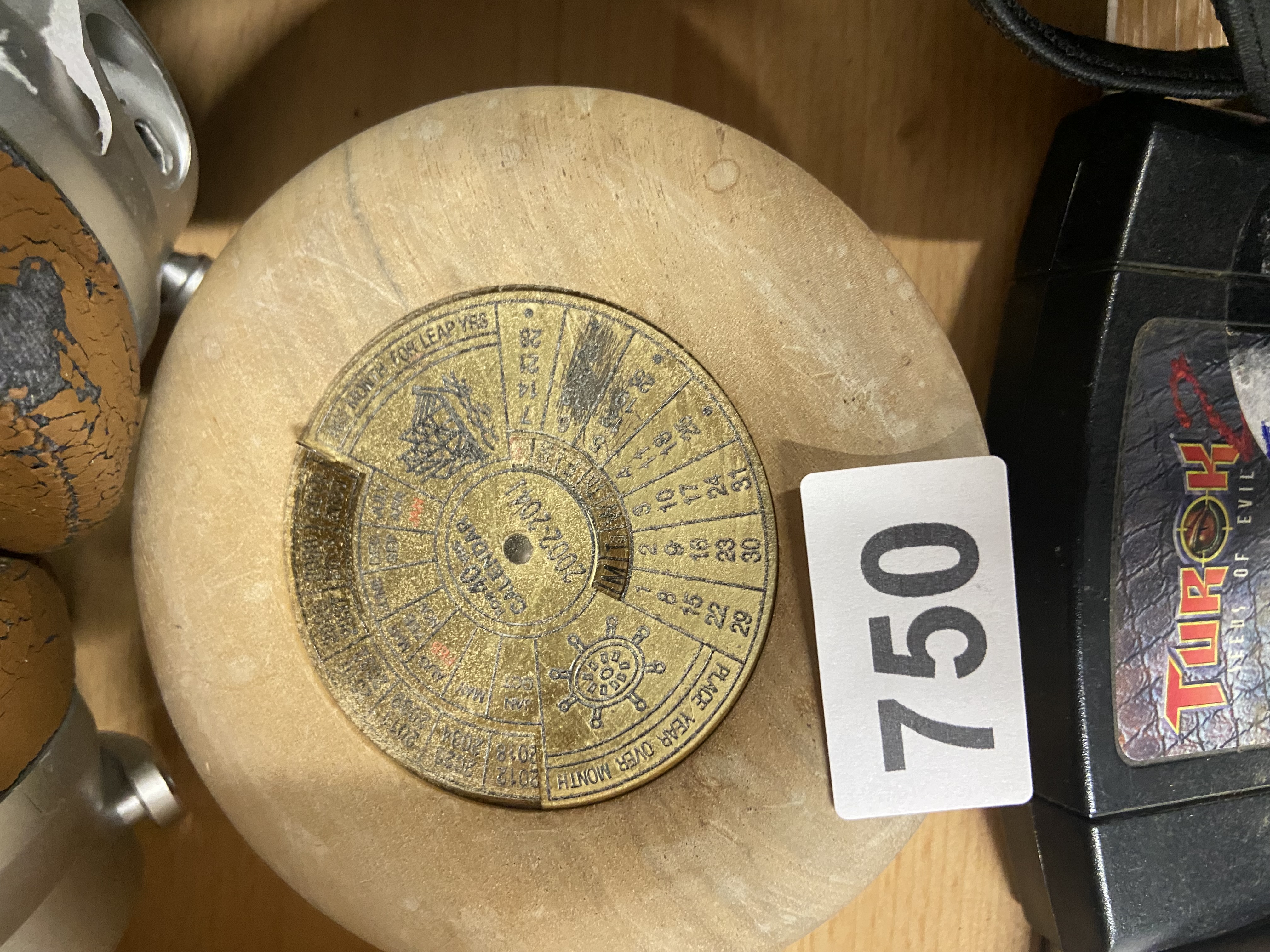 A Brass and Marble 40-Year Nautical Perpetual Desk Calendar Paperweight