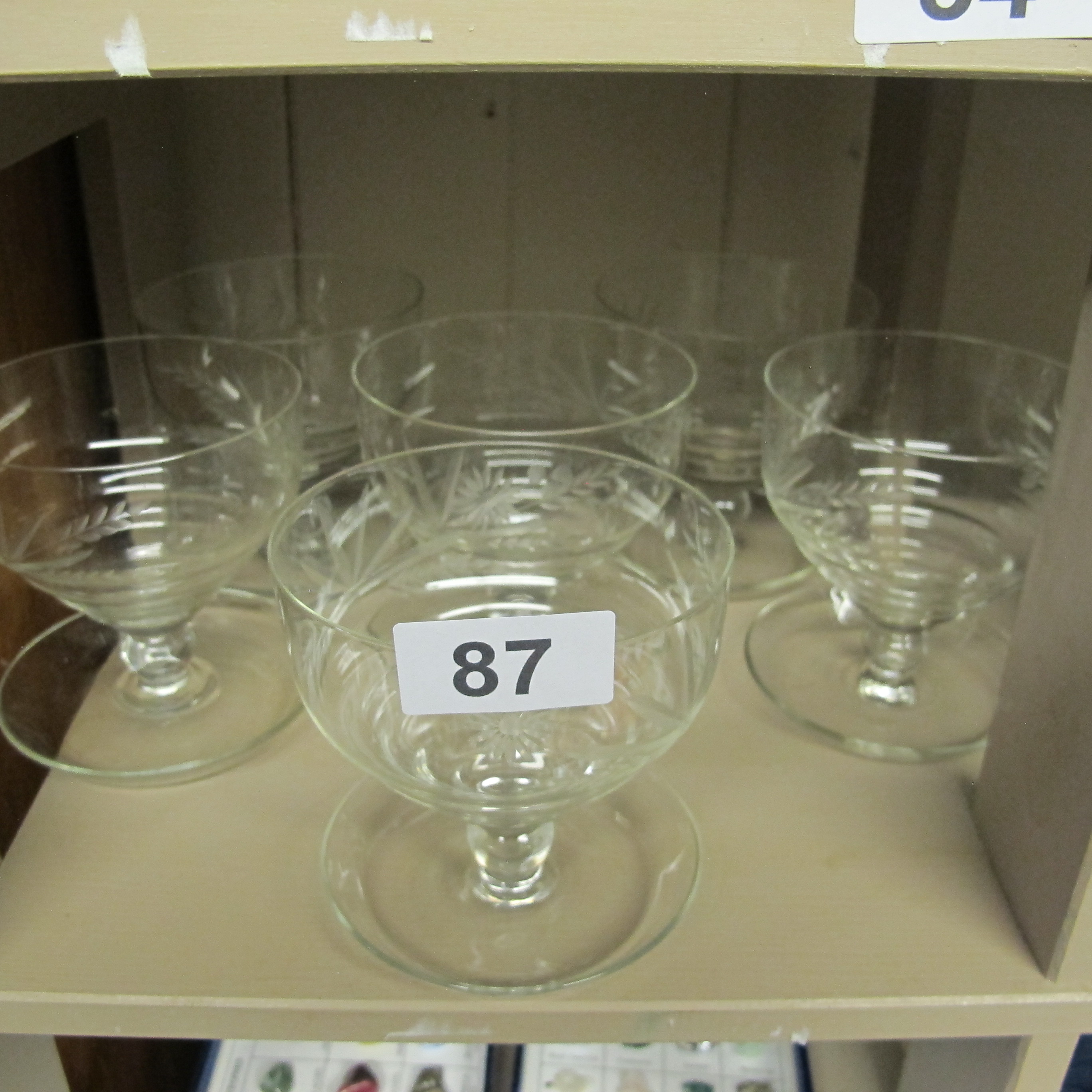 Set of six Stuart Crystal ‘Elgin Design’ Etched Glass Dessert Dishes