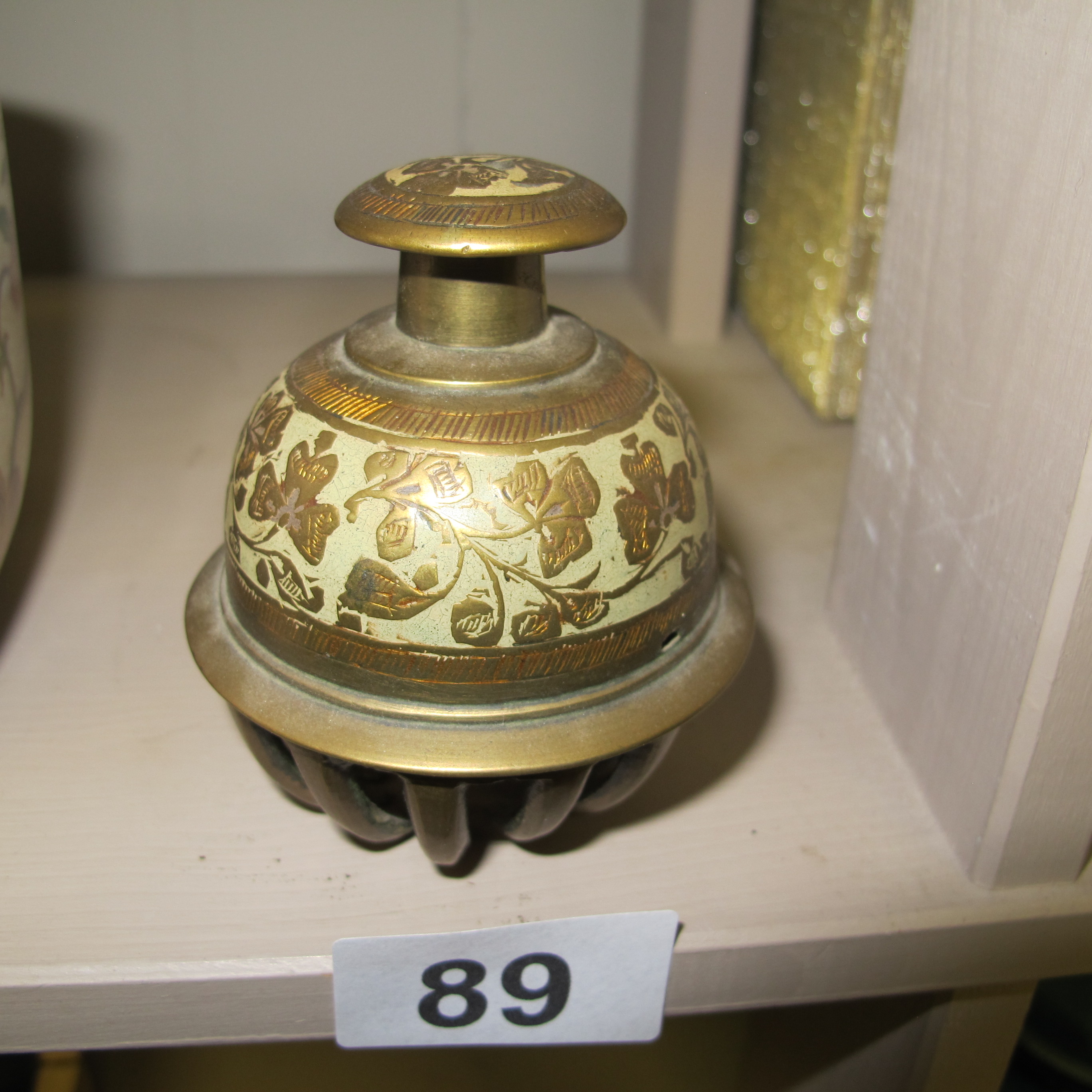 Vintage Indian Brass Etched Elephant Bell with Enamel-like Finish